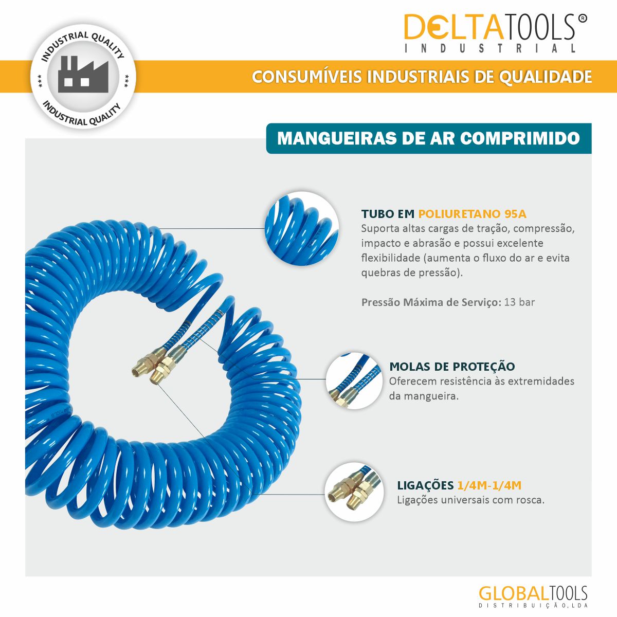 - Tubo em Poliuretano 95A, suporta altas cargas de tração, compressão, impacto e abrasão, possui excelente flexibilidade (aumenta o fluxo de ar e evita quebras de pressão). Máximo: 13 Bar
