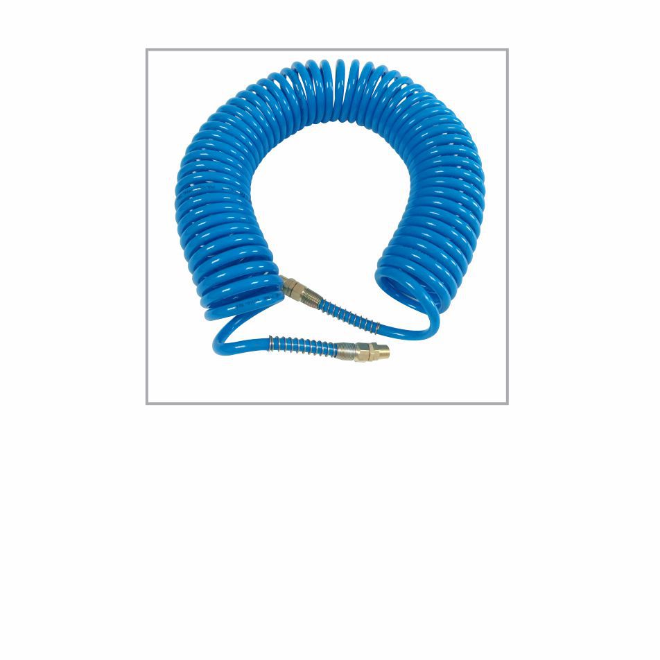 Mangueira de ar comprimido com tubo em Poliuretano (PU), oferece flexibilidade, leveza e resistência à abrasão e torção.