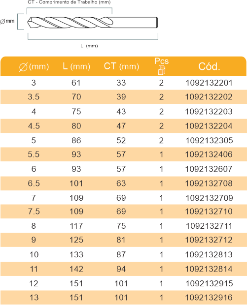 | Brocas cobalto HSS-M35 Nitrided ideal para aço inox, composta por aço rápido com 5% de cobalto e revestimento de Nitrided que aumenta a longevidade da broca |