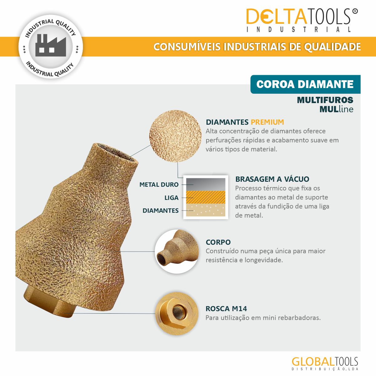 Coroa diamantada multifuros MULline DELTATOOLS