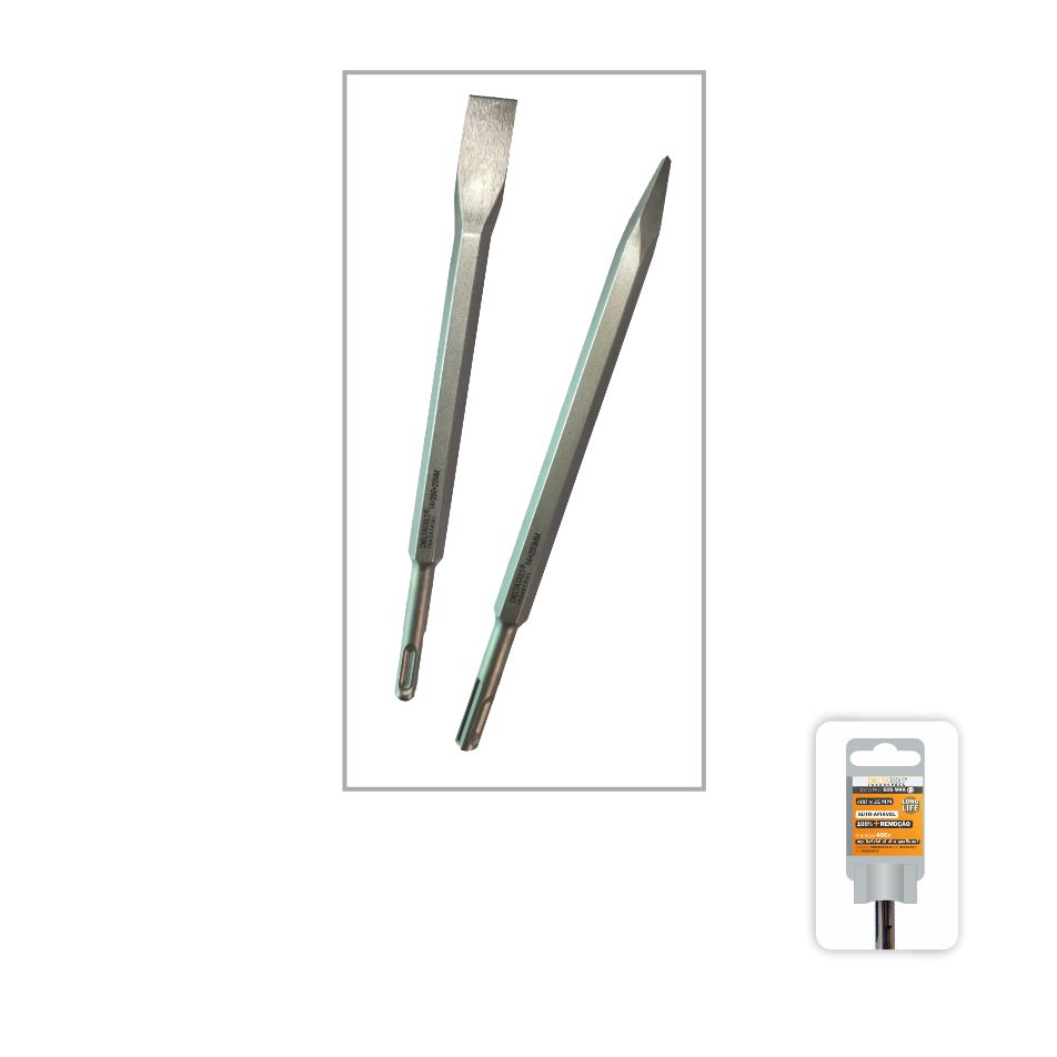 Escopro / Ponteiro SDS PLUS produzido com material 40Cr, aço especial de alta qualidade com grande resistência ao impacto e ao desgaste.