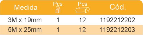 ABS: Material leve facilita o manuseio da fita. Alta resistência ao impacto e ao desgaste do uso diário. Durabilidade aumentada que prolonga a vida útil da fita.