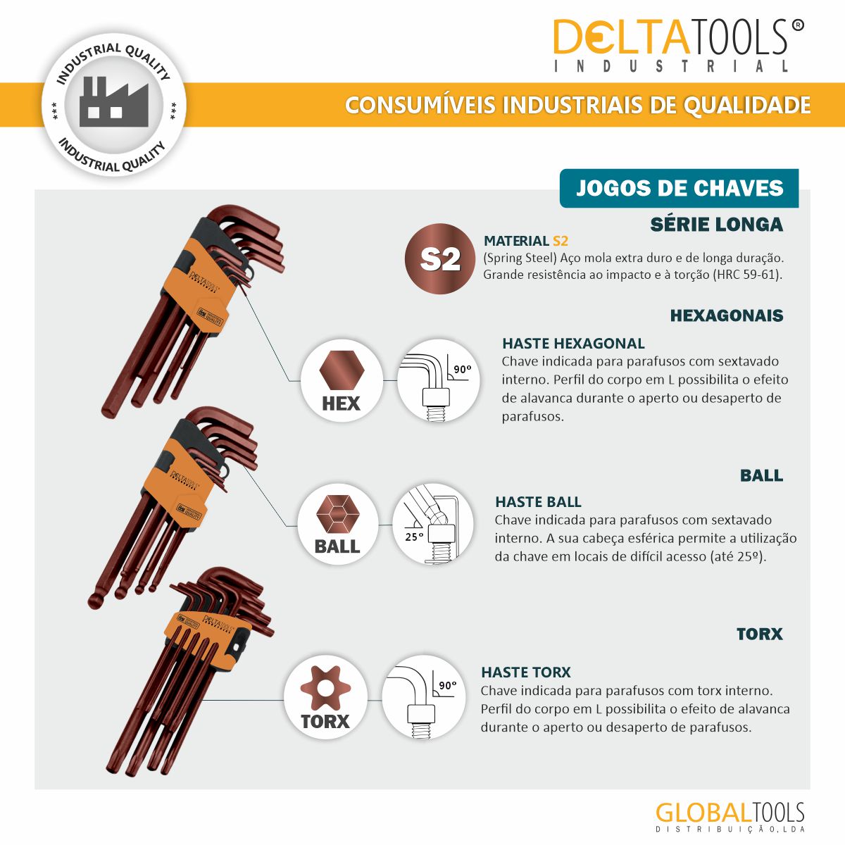![]() Jogo de chaves Ball em aço S2 spring steel (aço mola) extra duro de longa duração, grande resistência ao impacto e à torção. |