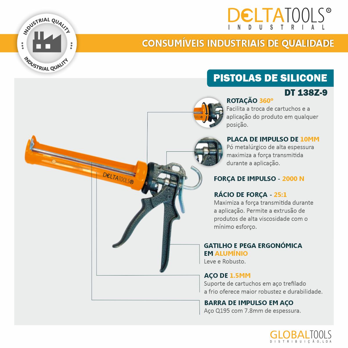 Pistola de silicone indicada para cartuchos de 310 ml, para usar com bucha química, adesivos de montagem e silicones.